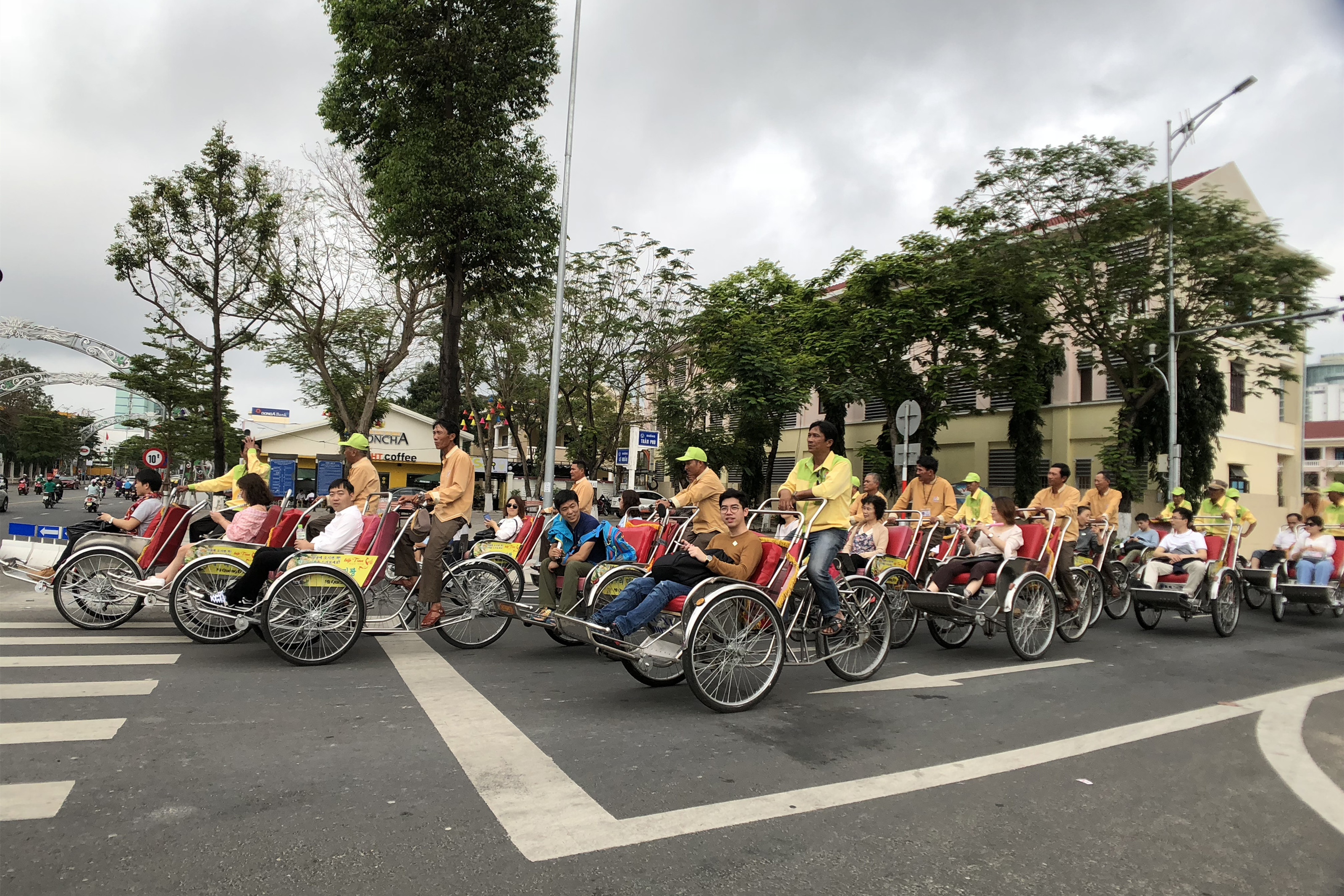 來(lái)到越南當(dāng)?shù)兀』锇閭儽M情體驗(yàn)了一把越南的三輪車。